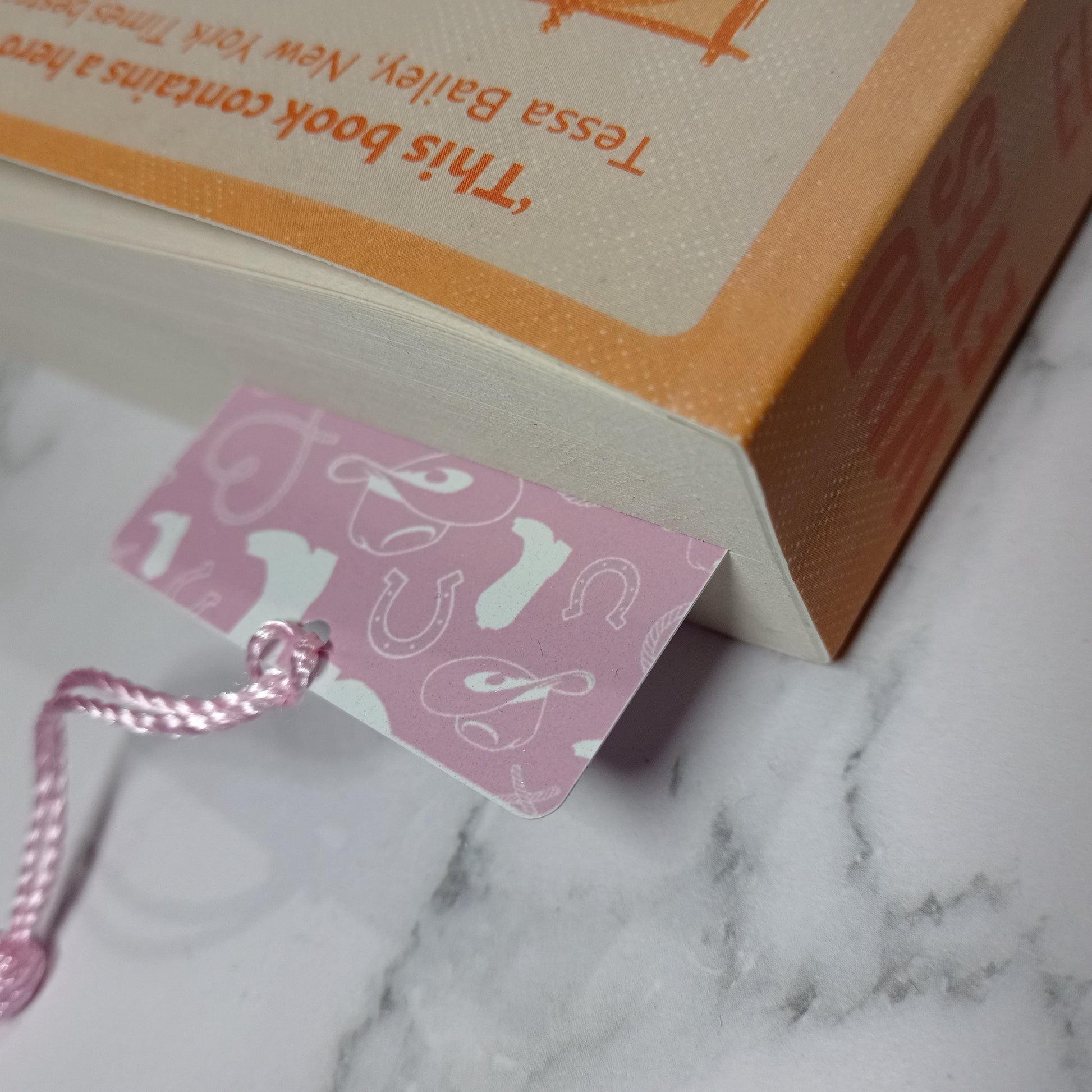 This gorgeous bookmark will fit nicely between the pages of your cowboy romance reads, super thin so it won't warp the book and measuring 8.5cm by 5.5cm. Double sided design, same design on both sides, has a slight glittery effect.